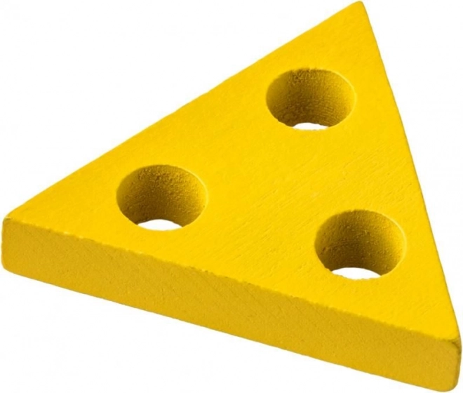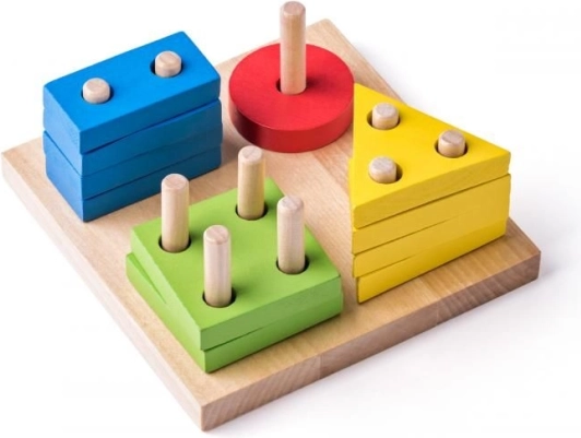 Le set comprend des cercles, rectangles, triangles et carrés aux couleurs vives, que les enfants reconnaissent facilement et associent correctement aux chevilles.