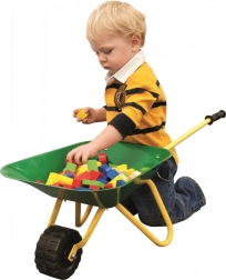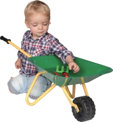 La brouette en métal pour enfants est conçue pour les petits explorateurs et jardiniers. Idéale pour le transport de jouets ou de matériaux lors des jeux en extérieur. La brouette a une unique roue en plastique noir, un cadre en métal et des poignées jaunes, ce qui facilite sa manipulation même pour les plus petits enfants.