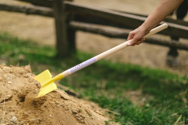 Le manche en bois lisse tient parfaitement dans la main des enfants et facilite une manipulation sûre lors des travaux au jardin.