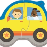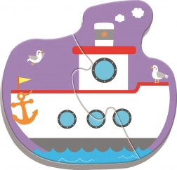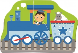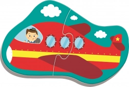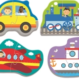 Puzzle pour enfants sur le thème des transports pour les tout-petits, alliant divertissement et apprentissage. Il comprend quatre puzzles de deux pièces avec un bateau, un avion, une voiture et un train, qui aident à développer la motricité et les compétences de résolution des enfants.
