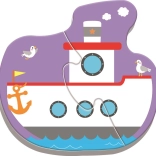 Chaque puzzle représente un moyen de transport différent – voiture, train, avion et bateau – et encourage le jeu créatif.