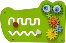 Déplacez les éléments dans les pistes et tournez les roues dentées qui font bouger les « yeux » du crocodile – un excellent entraînement de la motricité fine et de la coordination.
