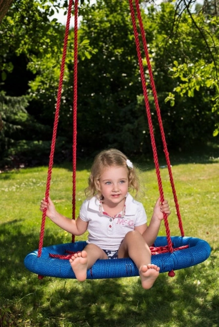La balançoire est destinée à une utilisation en extérieur et est équipée de cordes de suspension de 170 cm, à accrocher à l’aide d’anneaux métalliques. Les cordes sont solidement terminées par un nœud pour une sécurité supplémentaire. Ce produit est idéal pour le jeu comme pour la détente à l’air libre.
