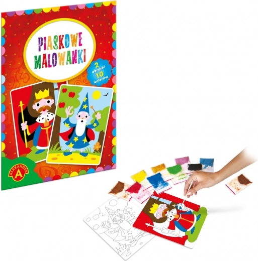 Le jeu artistique de peinture au sable consiste à dévoiler progressivement les différents éléments prédécoupés de l’image afin de mettre à nu la surface adhésive du fragment choisi. Chaque fragment dévoilé est saupoudré de sable de la couleur correspondant au motif indiqué dans le mode d’emploi et sur la boîte.