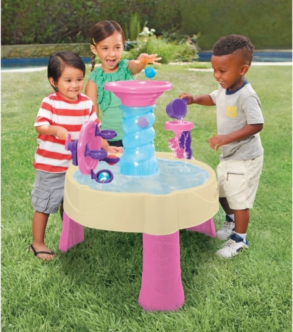 LITTLE TIKES Spiralin' Seas est un parc aquatique ludique qui plonge les enfants dans l’univers des expériences avec l’eau. Grâce à son design rose et beige, à sa tour en spirale et à sa roue à eau, les enfants observent l’écoulement, la rotation et les éclaboussures tout en développant leur motricité fine, leur coordination œil-main et leurs compétences sociales lors du jeu collaboratif.