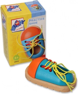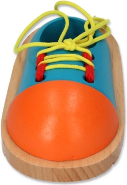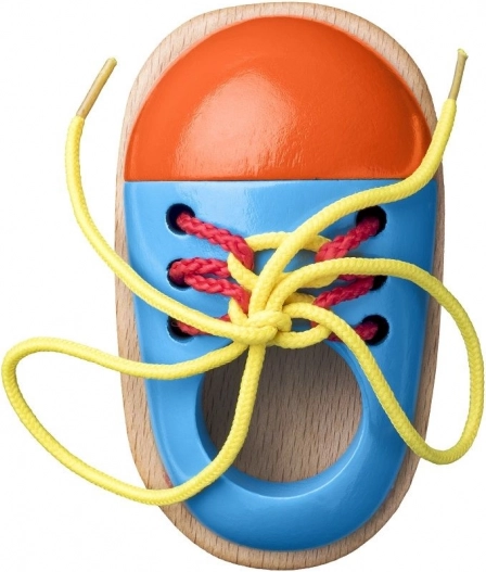 Cette chaussure colorée en bois est un outil intelligemment conçu grâce auquel les enfants s’entraînent de façon ludique au laçage des lacets. Sa construction solide aux bords lisses est sûre pour les petites mains et ses couleurs vives invitent à s’exercer encore et encore.