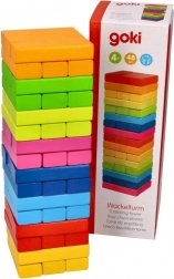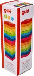 La tour d’équilibre de la marque GOKI apporte le classique plein de suspense dans une version moderne et arc-en-ciel. Chaque étage est composé de trois plaquettes de bois colorées que vous empilez en une tour stable, puis vous déplacez prudemment une pièce après l’autre vers le sommet. L’objectif est de maintenir l’équilibre le plus longtemps possible.
