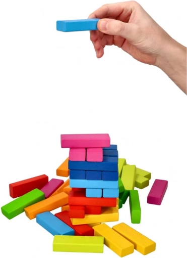 Construisez la tour, retirez des pièces et posez-les au sommet. Celui qui fait tomber la tour perd – du suspense jusqu’au dernier coup.