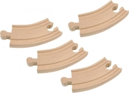 Étendez votre circuit de train en bois avec quatre courbes courtes qui permettent des virages fluides et de nouvelles voies. Chaque pièce mesure 10 cm et convient aux enfants dès 3 ans. Compatible avec les circuits de trains en bois standards, se connecte facilement et favorise le développement de la motricité fine et de la créativité.