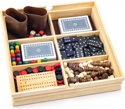 Le coffret contient des plateaux de jeu réversibles ou séparés pour les jeux préférés : échecs, moulin, trictrac (backgammon) et Petits chevaux. Des pièces aux couleurs bien distinctes et des cases contrastées assurent une bonne lisibilité, y compris pour les enfants. Les dimensions compactes 30 × 28 × 6 cm conviennent parfaitement à la maison, à la résidence secondaire et aux voyages.