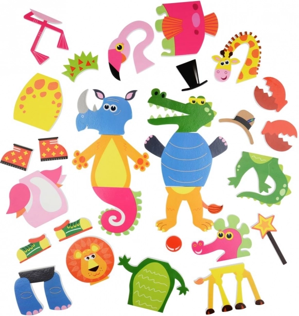 Créez un crocodile, une girafe, un flamant rose et bien d’autres. Mélangez les parties du corps et les accessoires et inventez sans cesse de nouveaux personnages.