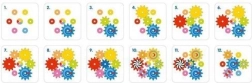 Tous les engrenages sont colorés des deux côtés et permettent un mouvement libre et des variations infinies, assurant des heures de divertissement pleines de découvertes lorsque les engrenages commencent à tourner pour la première fois.
