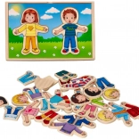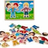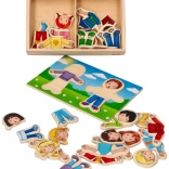 Ce puzzle d'habillage populaire est fabriqué en bois de haute qualité, non seulement durable, mais également écologique. Il est livré dans une boîte en bois pratique avec un couvercle, qui sert également de base pour le montage. Les enfants peuvent créer d'innombrables créations en échangeant les têtes, les corps et les jambes, et s'amuser énormément.