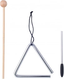 Le triangle en métal avec sa baguette produit un son clair et perçant qui guide parfaitement le rythme. Il apprend aux enfants la précision du geste et la sensibilité à la dynamique.