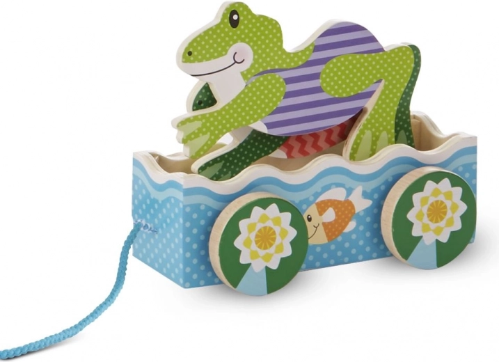Jouet à tirer en bois Courses de grenouilles
