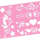 Des pochoirs réutilisables avec des fleurs, des cœurs et des papillons facilitent un tracé rapide et net des motifs préférés.