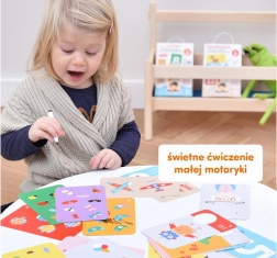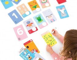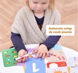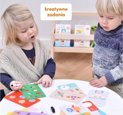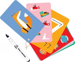 Le set comprend des illustrations colorées et pleines d’humour qui encouragent les enfants à des activités créatives. Les cartes permettent de dessiner et d’effacer à répétition, ce qui en fait un excellent cadeau éducatif pour les enfants d’âge préscolaire. Idéal aussi pour les voyages avec votre enfant.
