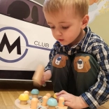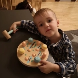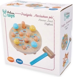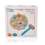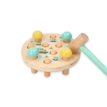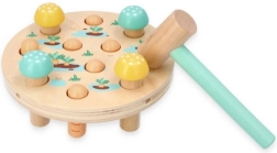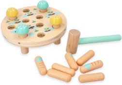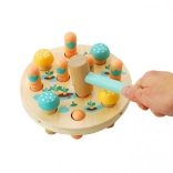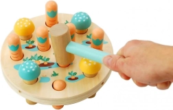 La masse en bois Champ de carottes propose une base en bois ronde avec des trous pour des chevilles en bois colorées en forme de carottes. La tâche de l'enfant est de planter les carottes à l'aide d'un petit marteau adapté avec un manche menthe, idéal pour les petites mains. Avec un coup rapide, les enfants améliorent non seulement leur coordination main-œil et leurs compétences motrices fines, mais commencent aussi à comprendre les relations de cause à effet. À la fin du jeu, il suffit de retourner la base, de retirer les carottes et de recommencer!