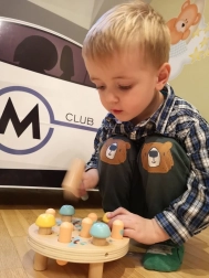 Les chevilles colorées et le marteau sont conçus pour attirer l'attention des enfants et permettre une manipulation facile.