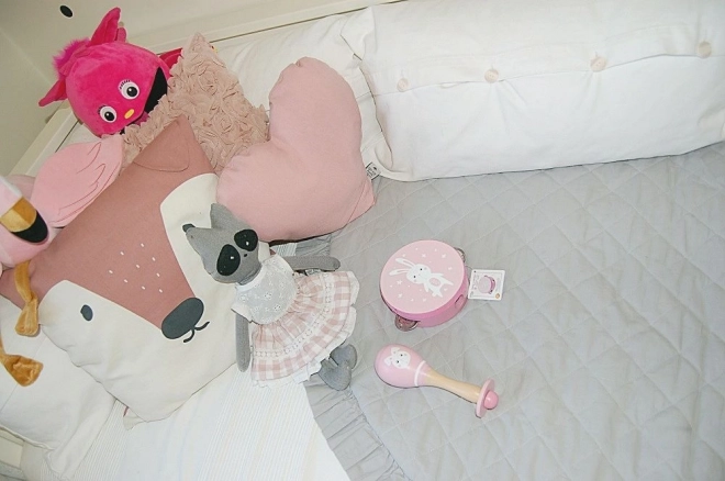 Ce maracas en bois rose orné d’un petit lapin est un excellent premier instrument de musique pour les tout-petits. Son tintement doux favorise le développement de l’ouïe, du sens du rythme et de la curiosité naturelle, tandis que sa forme et sa taille sont parfaitement adaptées aux petites mains d’enfant. Le bois naturel, la surface lisse et les bords soigneusement arrondis garantissent un jeu en toute sécurité au quotidien.