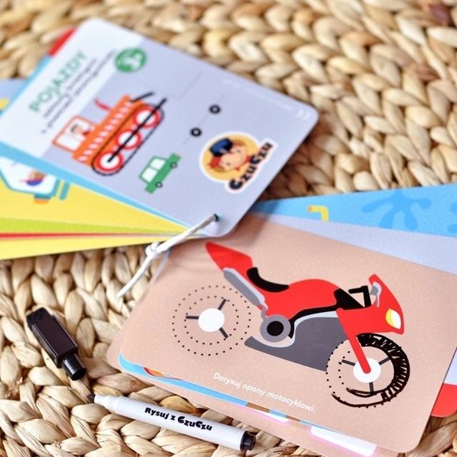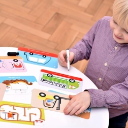 Le set CzuCzu Véhicules offre aux enfants de nombreuses activités intelligentes sur le thème des différents moyens de transport. Le livret relié par une cordelette est rempli d’illustrations vives et de tâches qui peuvent être réalisées encore et encore grâce au feutre effaçable. L’emballage pratique avec poignée est parfait à la maison, en visite ou en voiture.