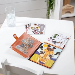 Les motifs colorés du lion, de la girafe et d’autres animaux invitent à inventer ses propres histoires et expressions. Les enfants s’amusent à créer de multiples combinaisons.