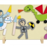 Un jeu créatif magnétique sur le thème des chevaliers qui développe la motricité fine, la créativité et l'imagination des enfants. L’ensemble comprend une tablette magnétique, des supports et des pièces en bois colorées avec aimant permettant de composer différentes figures et scènes médiévales.