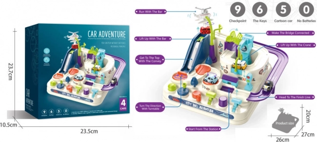Les boutons de commande et les molettes donnent aux enfants le contrôle des plateformes élévatrices, des plateformes mobiles et du pont. Le jeu développe les capacités de planification et de prise de décision — les petits pilotes doivent réfléchir au meilleur itinéraire pour surmonter les défis.