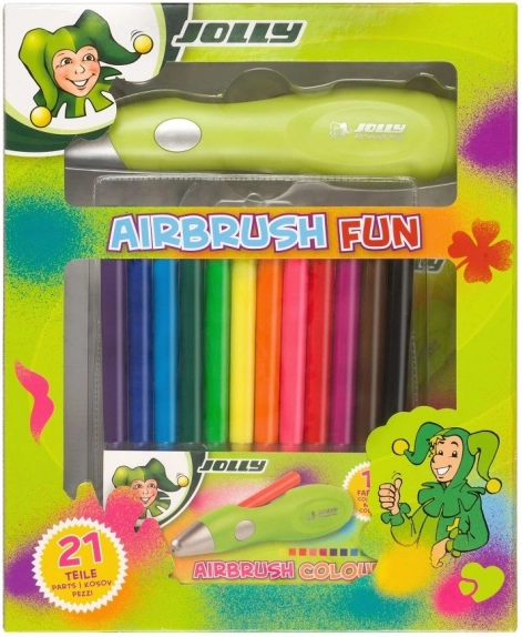 Le stylo aérographe JOLLY transforme tout papier, carton ou textile en œuvre originale. Grâce à la pulvérisation électrique de la couleur, vous obtenez des dégradés fluides, des ombrages et des lignes précises sans effort. Les pochoirs ludiques avec lettres, chiffres et motifs facilitent les débuts et stimulent l’imagination des enfants.
