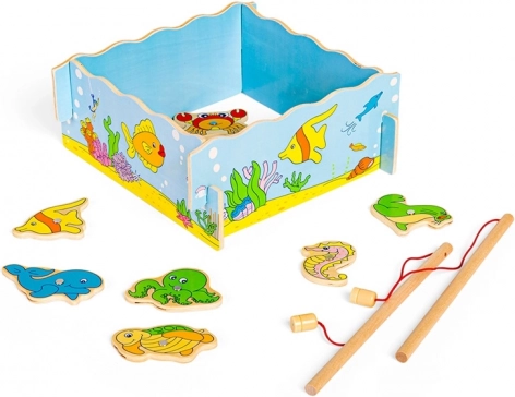 Découvrez la magie de la pêche à la maison. Le jeu de pêche magnétique en bois océan de BIGJIGS TOYS propose une faune marine variée, un bac en bois stable et deux cannes pour jouer seul ou à deux. Chaque prise renforce la précision des gestes et la concentration – idéal pour développer les compétences des enfants d’âge préscolaire.