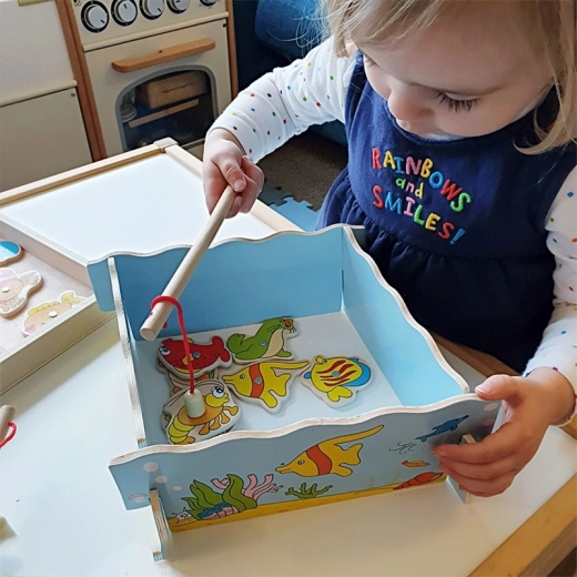 Attraper les petits poissons à l’aide d’aimants favorise la motricité fine, la coordination œil–main et la concentration – le tout de manière ludique dont les enfants ne se lassent pas.