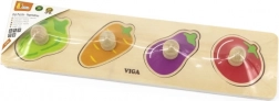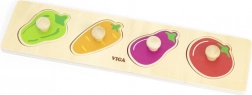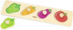 Ce puzzle en bois de qualité avec des formes de légumes (poivron, carotte, aubergine, tomate) est un premier puzzle idéal pour les enfants dès 1 an. Les grandes pièces avec boutons de préhension favorisent une bonne tenue, entraînent la coordination œil–main et aident les enfants à distinguer les couleurs et les formes.
