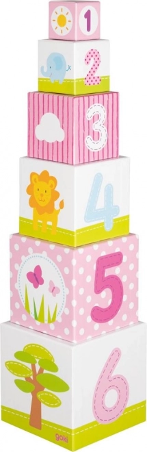Le plus grand cube mesure 14,3 × 14,3 × 14,3 cm et, une fois assemblés, les cubes forment une tour stable de 57,5 cm de haut. La qualité de fabrication GOKI garantit sécurité, innocuité et longévité, idéales pour un usage quotidien.