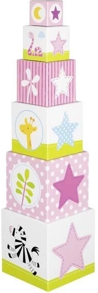 Le set comprend 6 cubes en carton rigide, à empiler en une haute tour ou à emboîter. Chaque cube est décoré d’illustrations amicales d’animaux, de plantes et de chiffres, permettant aux enfants de développer, en s’amusant, des compétences de base et la patience.