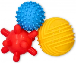 Le set comprend trois balles fabriquées en plastique sûr et durable. Les balles aident à développer les compétences motrices de l’enfant et garantissent un jeu à la fois amusant et éducatif.