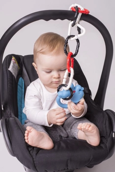 Les anneaux de liaison noir et blanc sont une aide précieuse pour les parents et les bébés. Le contraste des couleurs attire l’attention des nouveau-nés et soutient le développement visuel, tandis que les anneaux reliés aident à entraîner la préhension et la coordination des mains. Grâce à leur forme universelle, vous les fixez facilement aux jouets, à la tétine, à la poussette ou au siège auto.