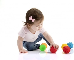 Chaque balle a une surface et une expression différentes qui éveillent la curiosité et favorisent la perception sensorielle ainsi que la motricité fine.