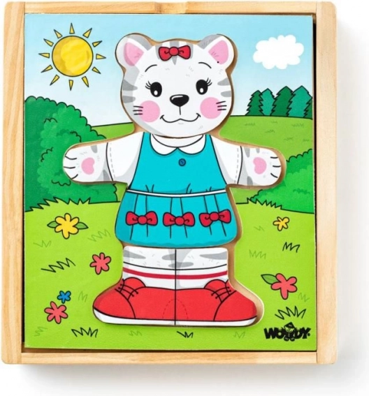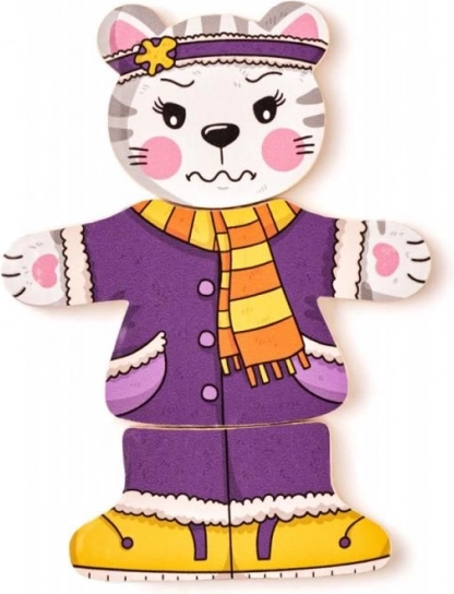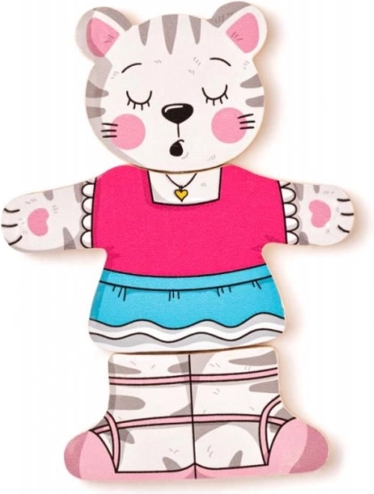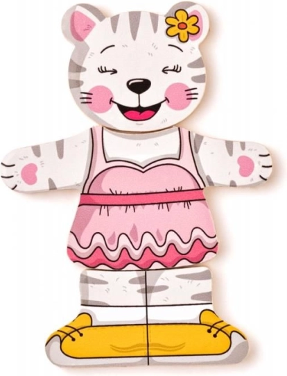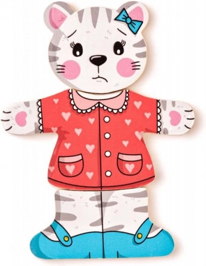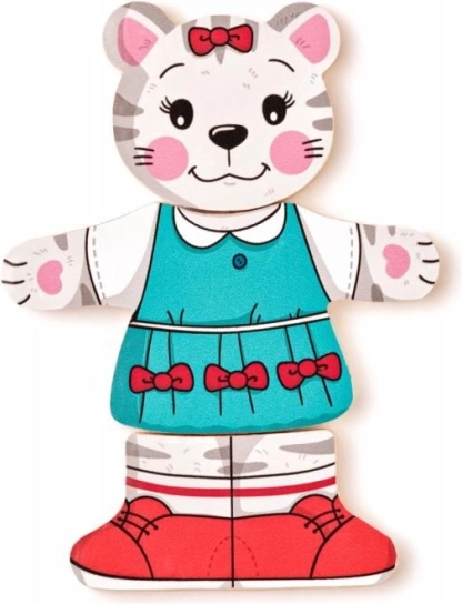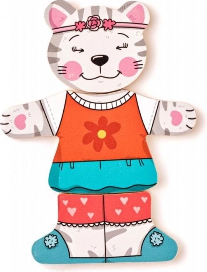 Offrez aux enfants la magie de l’habillage et de l’assemblage avec ce puzzle en bois chaton. Les pièces de tête, de corps et de jambes peuvent être combinées librement, permettant aux petits créateurs de composer d’innombrables tenues joyeuses. Le jeu soutient naturellement le développement de la motricité fine, de la coordination œil-main et la perception des formes et des couleurs.