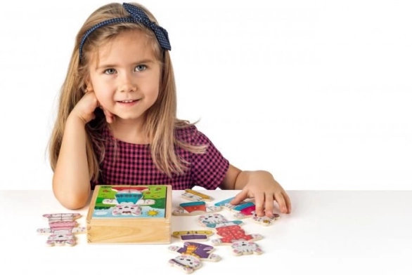 Intervertissez les têtes, les corps et les jambes pour créer des dizaines de combinaisons originales. Les enfants développent leur imagination et leur vocabulaire en décrivant les tenues.