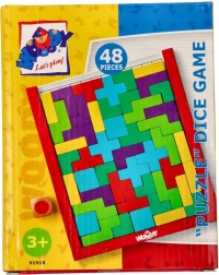Le puzzle comprend un dé de jeu qui ajoute une part d’aléatoire et de ludique, rendant chaque partie unique.