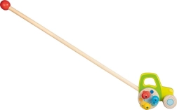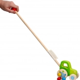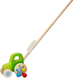 Le tracteur en bois à tige est conçu pour encourager les enfants à bouger et à explorer. Fabriqué en bois massif, il offre robustesse et durabilité. Les perles sur les roues arrière émettent des sons lors de la marche, stimulant davantage les sens des petits explorateurs.