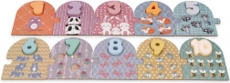 Chaque planche avec des animaux correspond à un chiffre. Les enfants associent visuellement et par le toucher le nombre à la quantité, ce qui facilite les premiers pas dans le comptage.