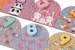 Ce puzzle en bois de qualité allie jeu et apprentissage. Chaque chiffre de 1 à 10 possède sa plaquette avec de jolis animaux en quantité correspondante, permettant à l’enfant de comprendre facilement la relation entre chiffre et quantité. Les chiffres en relief et colorés tiennent bien dans les petites mains et favorisent le développement de la motricité fine ainsi que de la perception visuelle.
