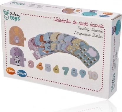 Découvrez une approche ludique des premières mathématiques avec ce puzzle en bois pour tout-petits. Le set comprend 10 planches avec des animaux et 10 chiffres amovibles de 1 à 10, qui apprennent aux enfants à compter, à reconnaître les formes et les couleurs et à entraîner leur motricité fine. Grâce à la philosophie Montessori, il favorise l’exploration autonome, l’apprentissage multisensoriel et la coordination œil–main. Idéal comme cadeau pour les enfants à partir de 12 mois.
