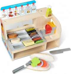 Ce comptoir à sandwichs réaliste permet aux enfants de composer leurs propres associations de pains, fromages, légumes et sauces. Les pièces en bois et en feutrine sont agréables en main et durables, pour jouer tous les jours. Le tri clair des ingrédients et de simples instructions illustrées guident les enfants pas à pas.