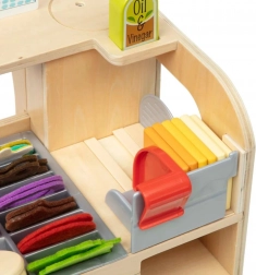 Le jeu de marchand ou de snack développe la communication, l’imagination et l’autonomie. Grâce à sa construction robuste et à son organisation astucieuse, l’ensemble est idéal à la maison comme en maternelle.