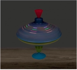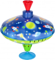 Toupie métallique traditionnelle sur le thème de l’espace avec des lumières LED spectaculaires, offrant des heures de divertissement aux enfants. Grâce à sa base stable, elle ne se renverse pas pendant le jeu, et en appuyant sur la tige supérieure, elle se met à tourner, s’illumine et émet un son agréable. Idéale pour développer la motricité fine et la coordination. Base stable, effets lumineux et jeu sécurisé dès 1 an.