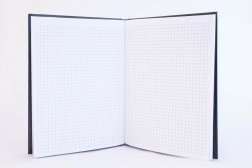 Carnet au format A5 avec couverture rigide. Le carnet noir présente sur la couverture avant un motif sur le thème de l’espace. Au centre de la couverture se trouve une petite plaque carrée souple en forme d’astronaute. Le carnet contient 80 pages à carreaux.