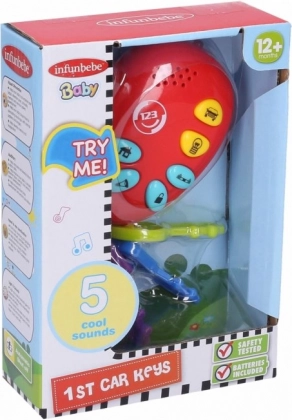 Clés interactives pour enfants avec effets sonores et lumineux de la marque Infunbebe, imitant de vraies clés de voiture et offrant des heures de jeu.