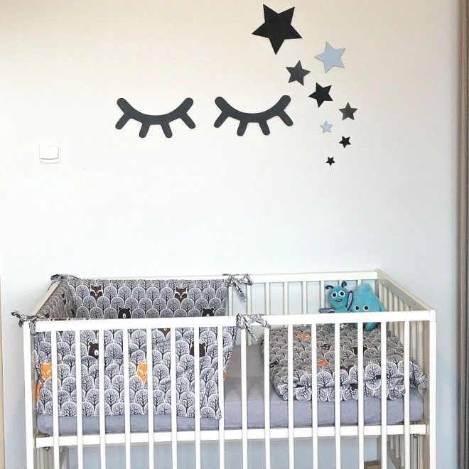 Les yeux fermés et les petites étoiles créent une atmosphère calme et onirique, idéale pour l’endormissement et la détente.